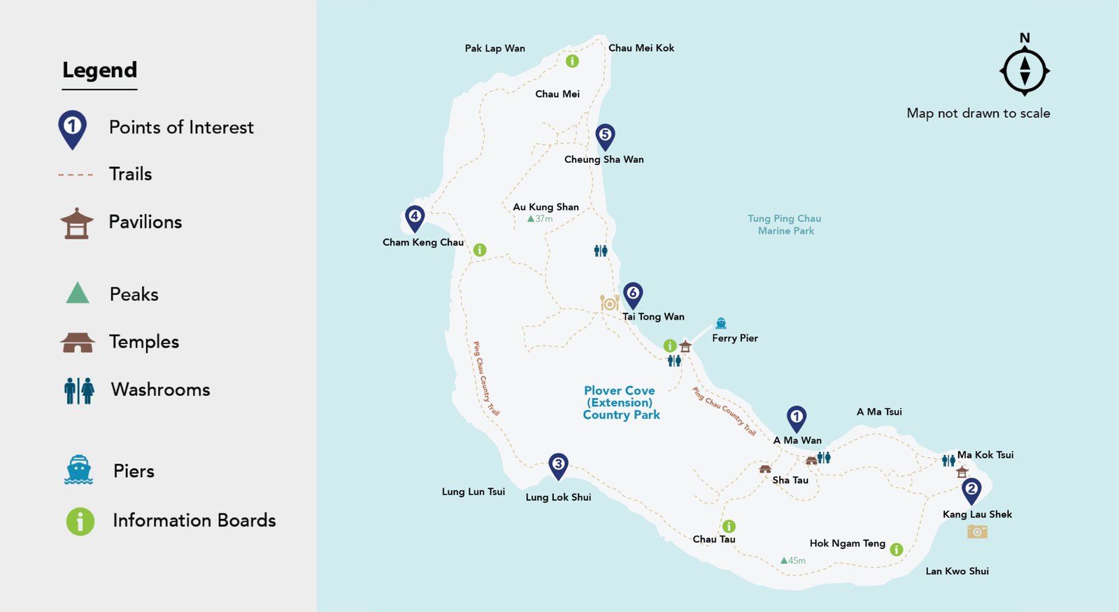 東平洲位於香港東北水域,島上設有清晰行山路線、碼頭及基本公共設施。透過島嶼地圖可快速了解主要景點分佈、行走方向及休息位置,方便首次到訪人士規劃行程。