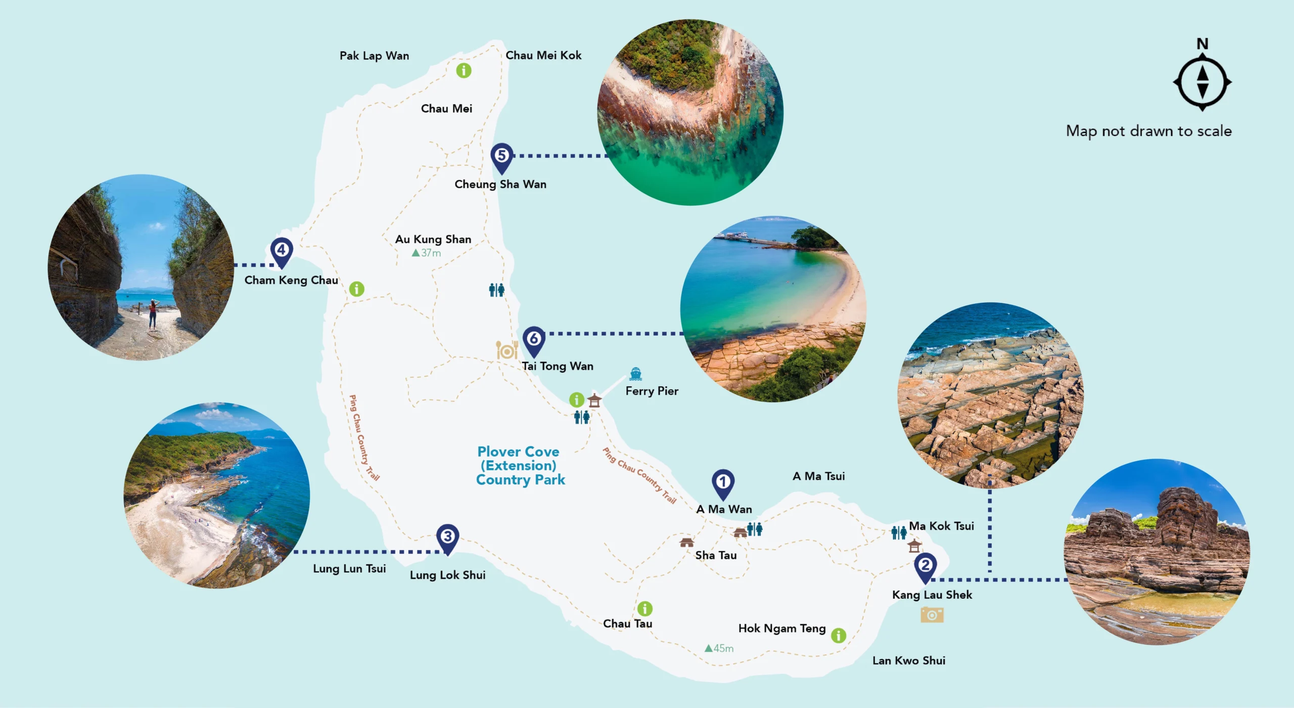 東平洲以獨特頁岩地貌聞名,島上多個海岸位置均為熱門打卡點。透過打卡景點地圖,可一次掌握主要拍照位置,避免錯過代表性景色。
